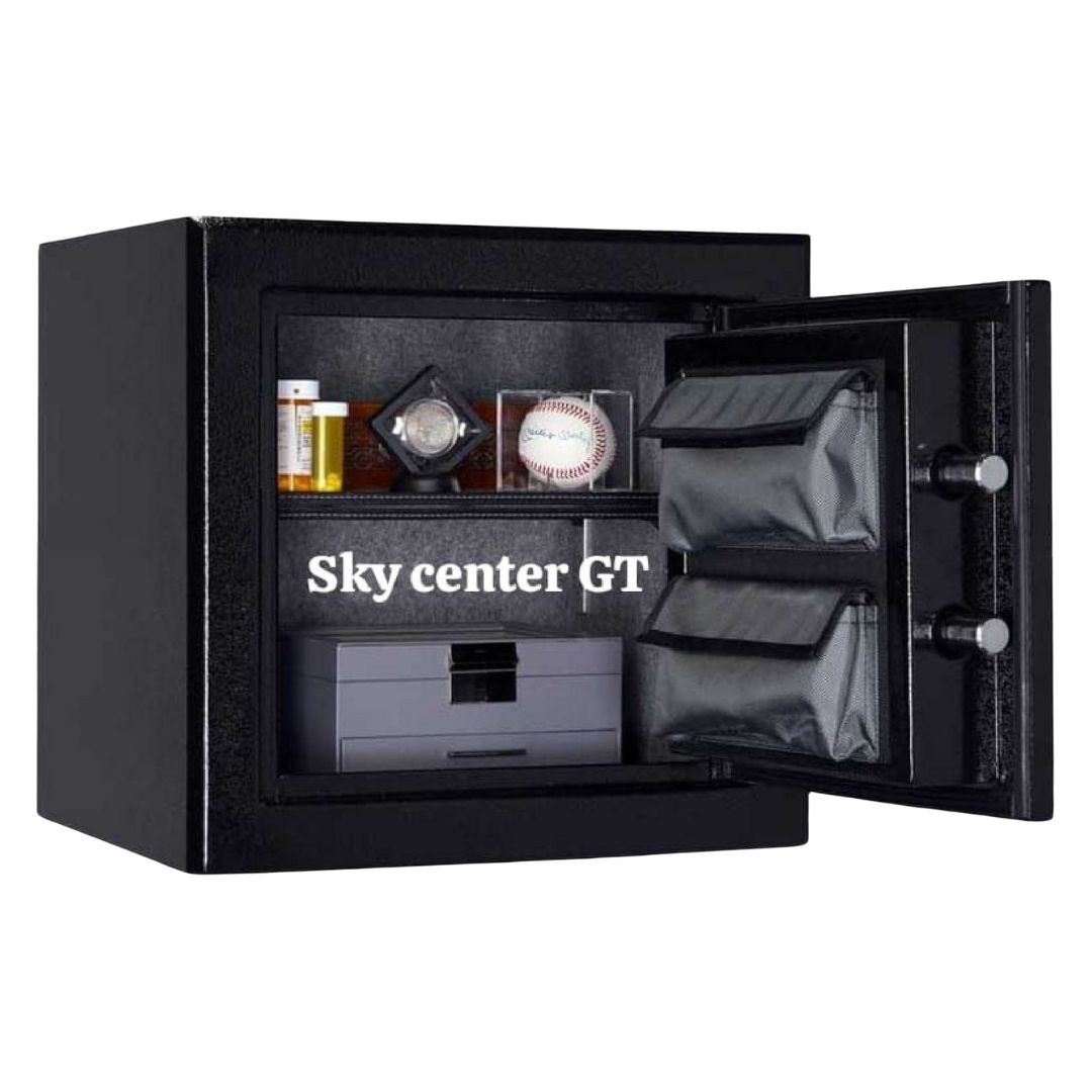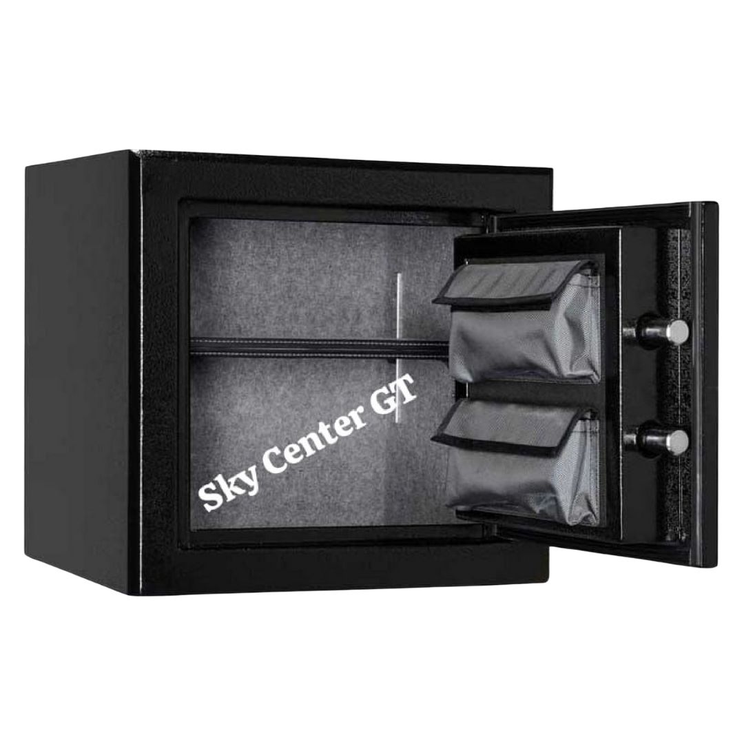 Cuenta con pernos de bloqueo de acción y bisagra interna TruLock que protegen incluso de ataques con palanca,  Construcción en 100% acero sólido.  Tiene una puerta de triple aleta, placa de acero endurecido y doble tapa que resiste incluso un taladro, además de cerradura electrónica con clave numérica.