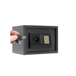 CAJA DE SEGURIDAD IDEAL PARA CASA U OFICINA , CON PANEL DE CONTROL ELECTRONICO Y PROGRAMABLE PARA EL RESGUARDO DE OBJETOS DE VALOR , EFECTIVO O DOCUMENTOS IMPORTANTES, PUEDE PROGRAMAR UNA CLAVE MINIMA DE 3 DIGITOS MAXIMO 8 , CUENTA CON 1 JUEGO DE LLAVES , PERNOS EXPANDIBLES PARA SU ANCLAJE AL PISO O PARED .